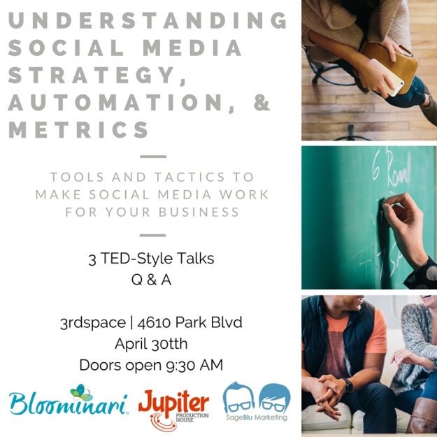 Understanding Social Media Strategy, Automation & Metrics Come learn tools and tactics to make social media work for your business. Together 3 digital agency owners bring the heat with “Understanding Social Media Strategy, Automation, and Metrics.” On April 30th our speakers with use decades of experience, personal antedotes, and live website roasts, to deliver social…